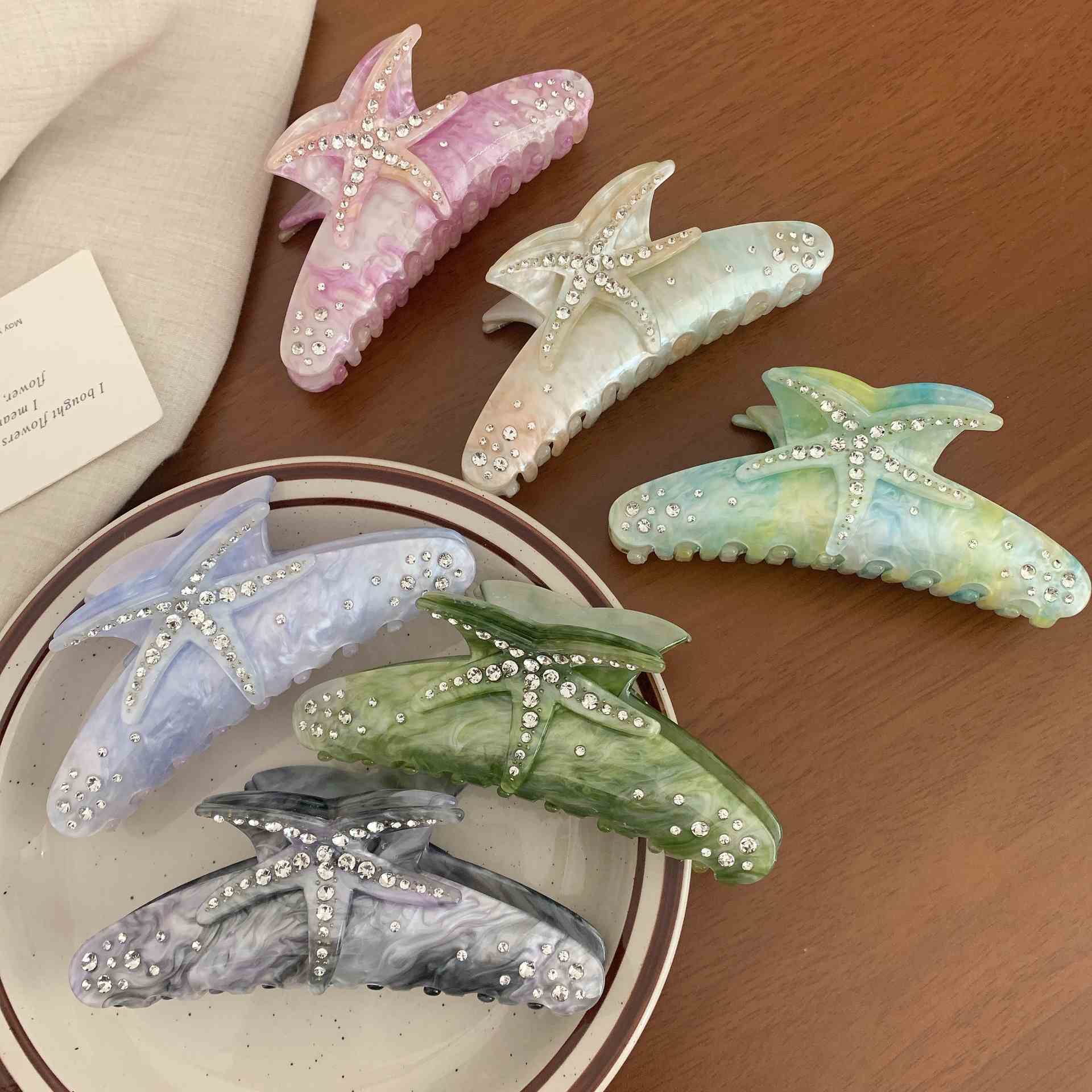 Nhà máy Bán buôn Thời trang Acetate Star Hair Claw 11,5 CM Kẹp tóc sao biển mùa hè cho phụ nữ Cô gái tóc dày